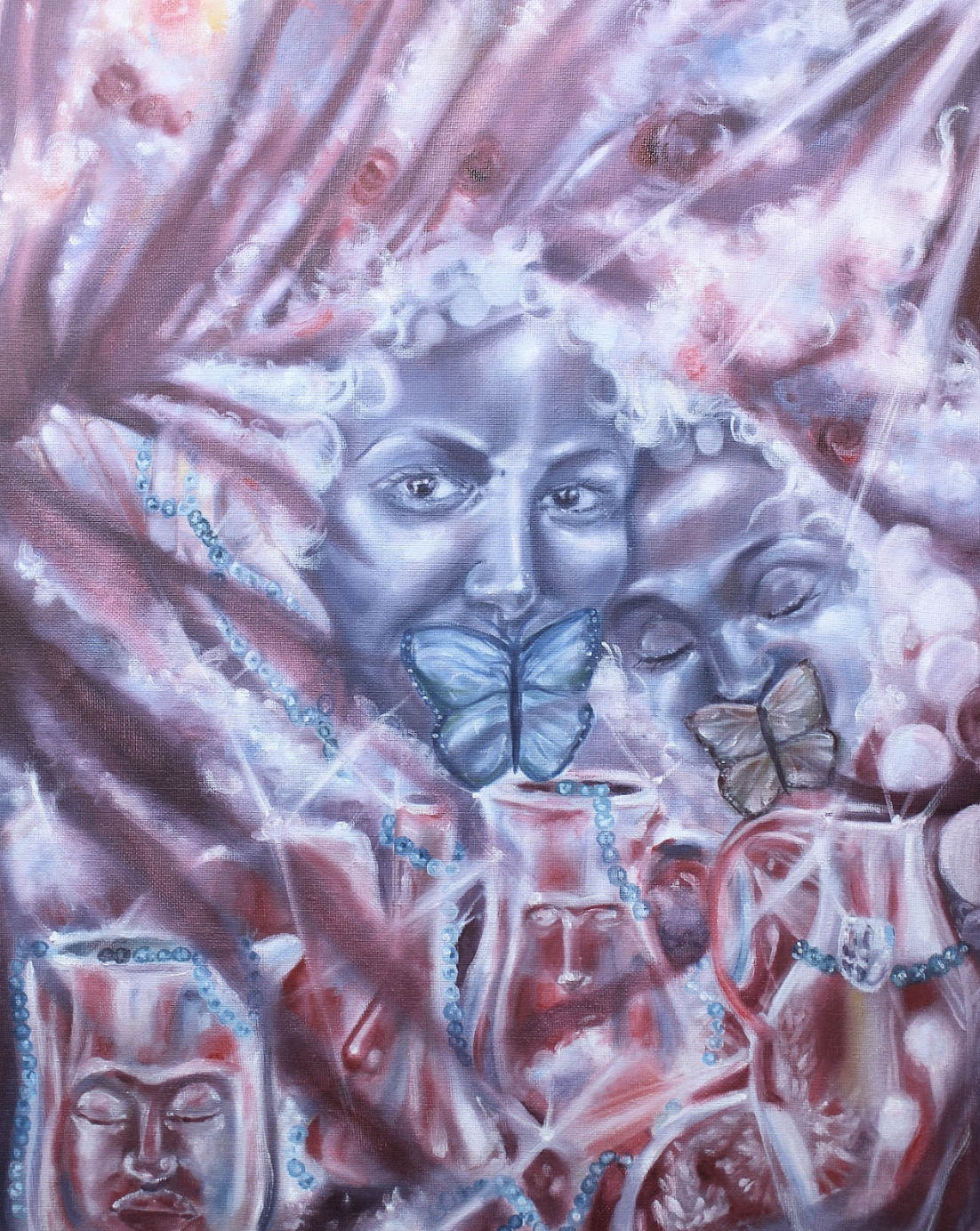 Leah Grace Craig is an Atlanta-based figurative painter whose ethereal oil paintings conjure dreamlike worlds where women drift through clouds, flowers, and symbolic creatures. Rooted in subconscious exploration and inspired by the misty landscapes of her Appalachian upbringing, her work balances softness and serenity with darker undercurrents of grief, resilience, and feminine power. Blending classical technique with contemporary symbolism, Craig’s paintings invite viewers into liminal spaces where beauty and unease quietly coexist.