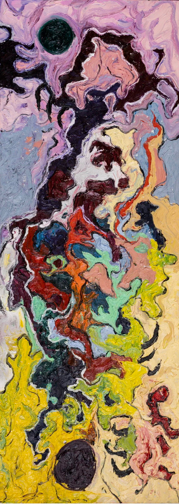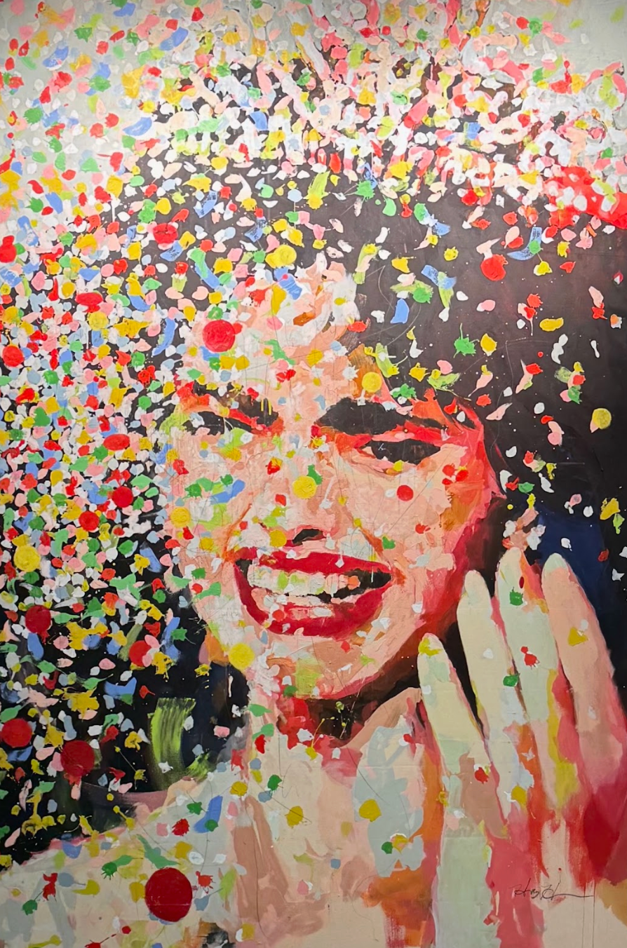 Hannah Hooper is an American visual artist and musician whose dynamic paintings channel the restless energy of mark-making into vivid, immersive scenes that often depict submerged figures and crowded spaces teetering between comfort and tension. A graduate of Parsons School of Design, she has built a multifaceted studio practice in Los Angeles that integrates her work as frontwoman and art director of the band Grouplove with her deeply intuitive, large-scale painting and drawing, bringing the same physicality and visceral instinct to both art forms. Hooper’s work invites viewers into a kaleidoscopic world where emotion, gesture, and the subconscious converge on canvas in bursts of color and motion.